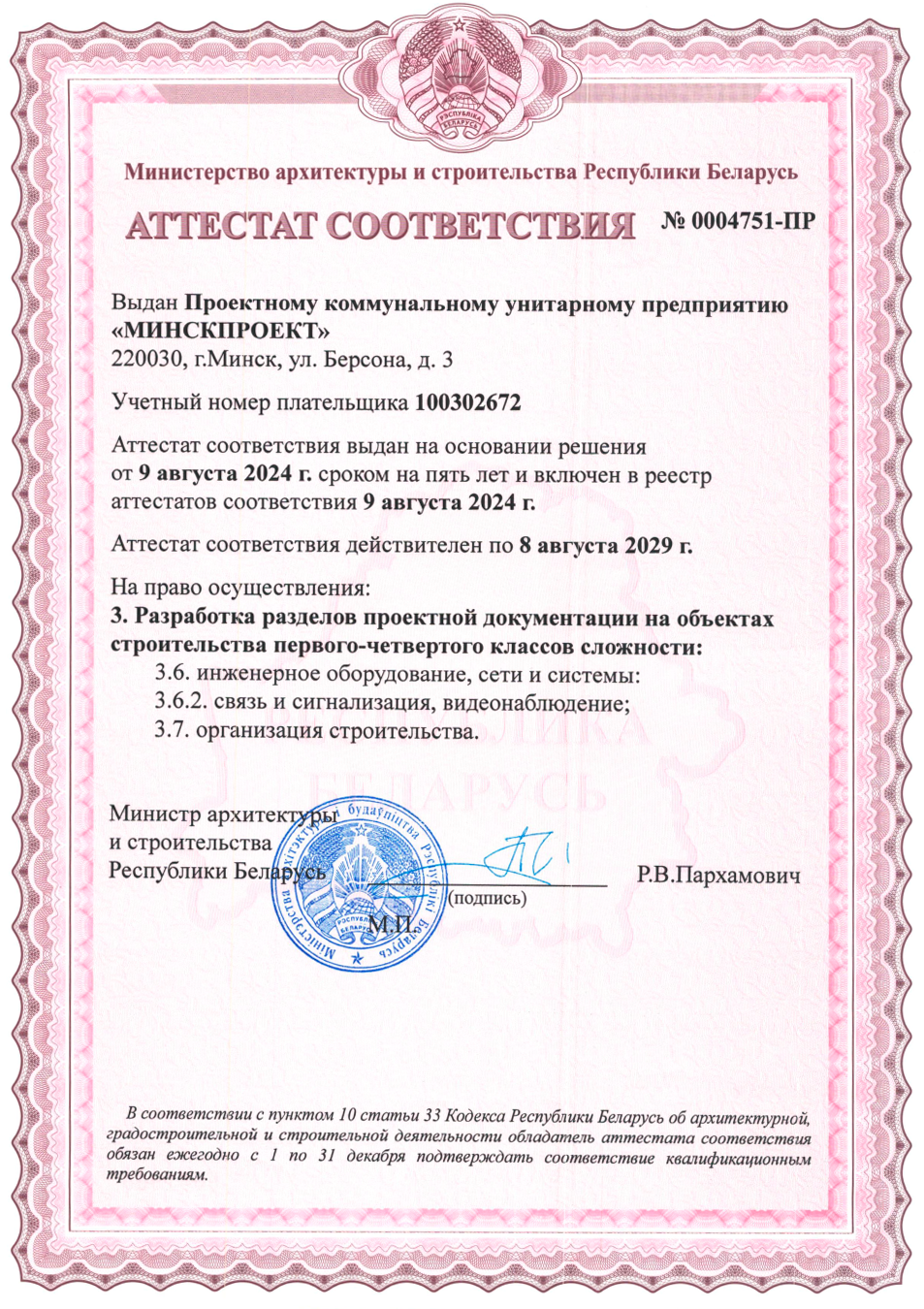 строительной деятельности УП «Минскпроект» являются: